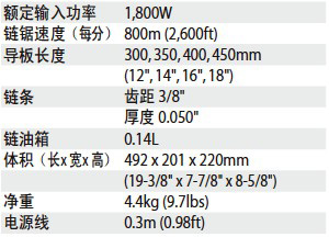 日本Makita牧田电链锯UC3030A|UC3530A|UC4030A|UC4530A技术参数:
