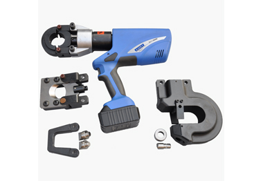 FP-KRT-120UNV电动液压压接机规格参数: 1、出力:12吨; 2、额定压力:700Bar; 3、压接能力:铜/Cu:400mm²,铝/Al:300mm²; 4、切断能力:≤45mm铜铝电缆、钢芯铝绞线; 5、冲孔能力:碳钢(厚)≤7mm、∅≤17.5mm,铜铝排(厚)≤7.5mm、∅≤20mm; 6、螺母破切能力:S≤36mm; 7、重量:主机6KG。