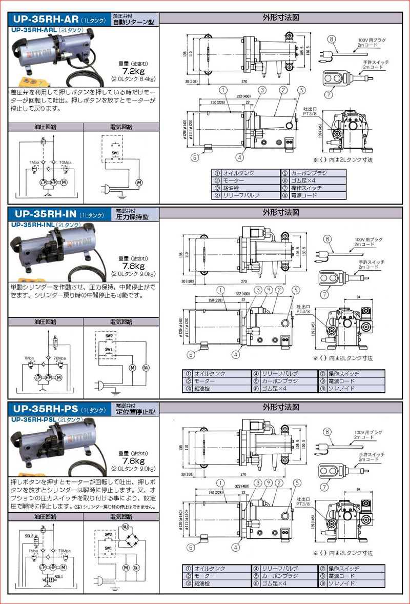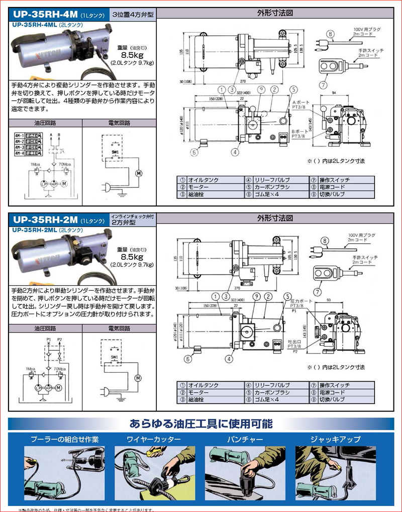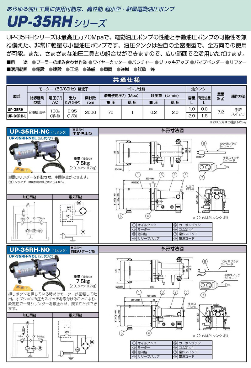 日本NITTOH|小型电动液压泵|UP-35RH|液压泵|电动泵|日东泵UP-35RH-4M|规格参数: