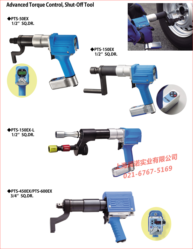 日本KUKEN气动电子定扭矩扳手PTS-450EX性能特点: 1、低噪音、低振动,电子数显精确控制扭矩,当达到设定的扭矩时自动停止; 2、自动判断进行紧固或拆装,适用于高扭矩要求的拆卸工作; 3、电池操作(AA电池×6),无需外接电源,2步安全工作启动按钮; 4、超高亮度LED显示,可以在黑暗的地方进行操作; 5、紧固精确度±5%.
