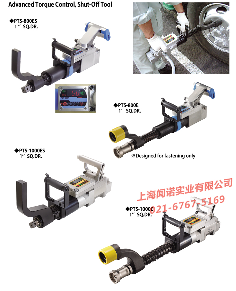 日本KUKEN气动电子定扭矩扳手PTS-800E性能特点: 1、低噪音、低振动,电子数显精确控制扭矩,当达到设定的扭矩时自动停止; 2、自动判断进行紧固或拆装,适用于高扭矩要求的拆卸工作; 3、电池操作(AA电池×6),无需外接电源,2步安全工作启动按钮; 4、超高亮度LED显示,可以在黑暗的地方进行操作; 5、紧固精确度±5%.