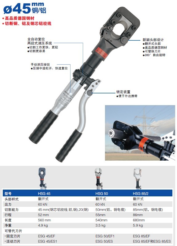 德国柯劳克KLAUKE|手动液压切刀HSG85/2|切刀|液压切刀|电缆剪|线缆剪|进口液压切刀|德国进口手动液压切刀